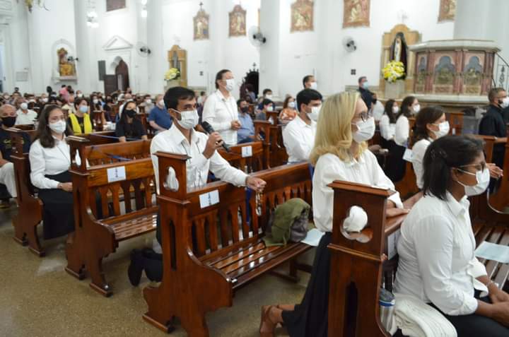 A santa missa presidida por Dom Roberto Lopes na Igreja Nossa Senhora da Conceição, em Resende, foi o momento também que os membros fizeram suas promessas para a Comunidade de Vida. Além do nosso servo fundador Padre Alexandre Paciolli, iCM, mais oito irmãos receberam o hábito e emitiram suas promessas.
